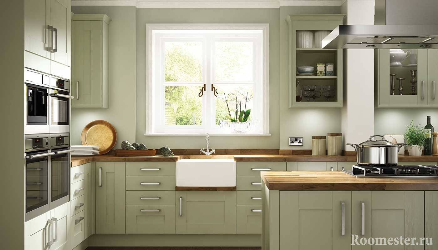 Дизайн кухни в оливковом цветеИсточник www.houzz.es
