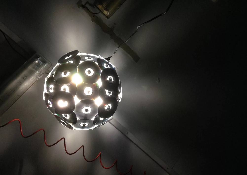 - Подсоединяют полученную конструкцию к лампе, на которую нанизывают диски.