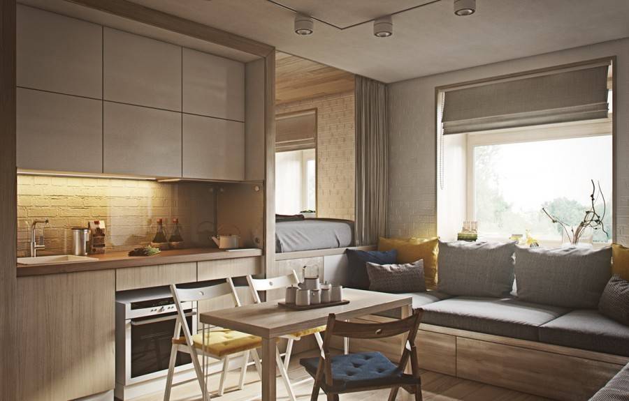 Как оформить кухню-студию с диваном и телевизором на 12 квадратах