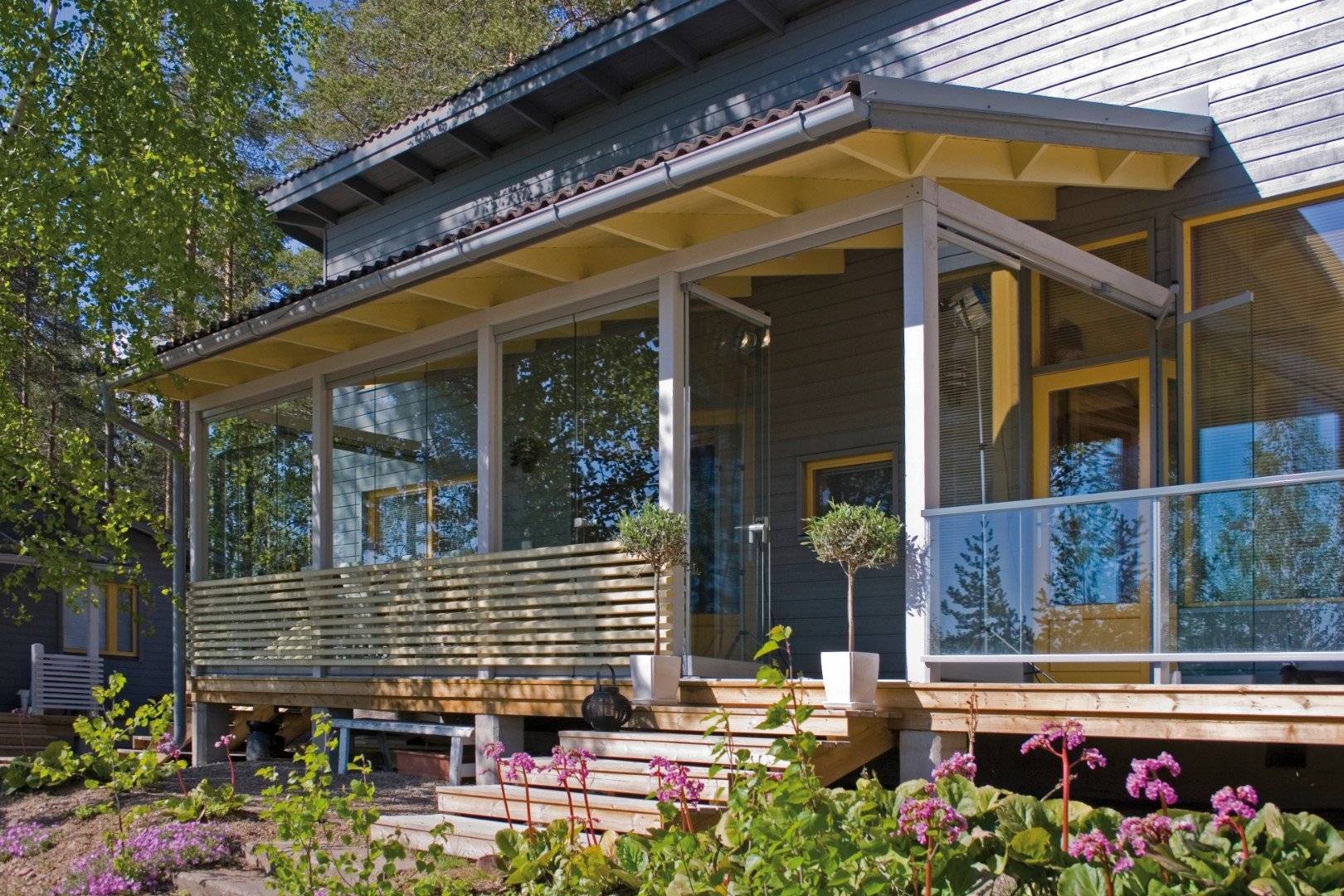 Теплое остекление веранды позволяет использовать ее в зимнее время годаИсточник evrofasad.by