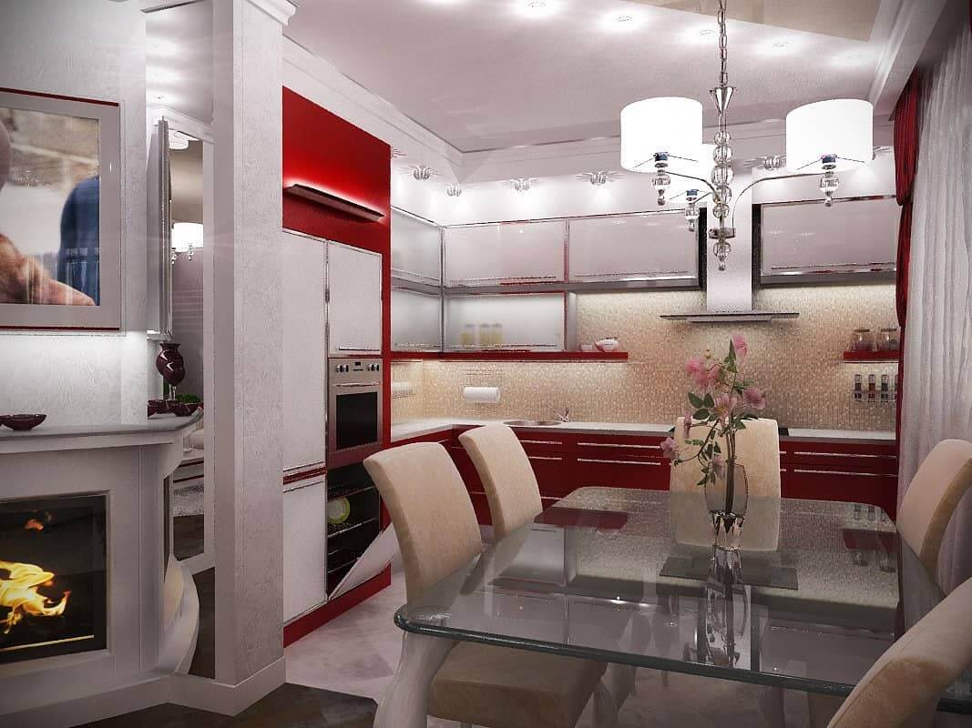 Психологами установлено, что красный цвет пробуждает аппетит, поэтому принимать пищу в таком интерьере вдвойне приятно;
