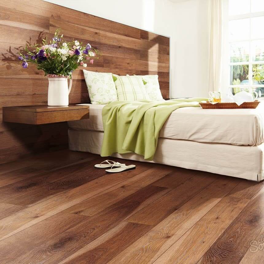 Совет. Диагональная укладка ламината сделает спальню визуально больше.