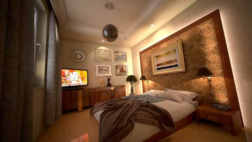 Реалии таковы, что ТВ принято устанавливать не только в гостиных, но и спальных комнатах. Стандартное расположение, напротив кровати.