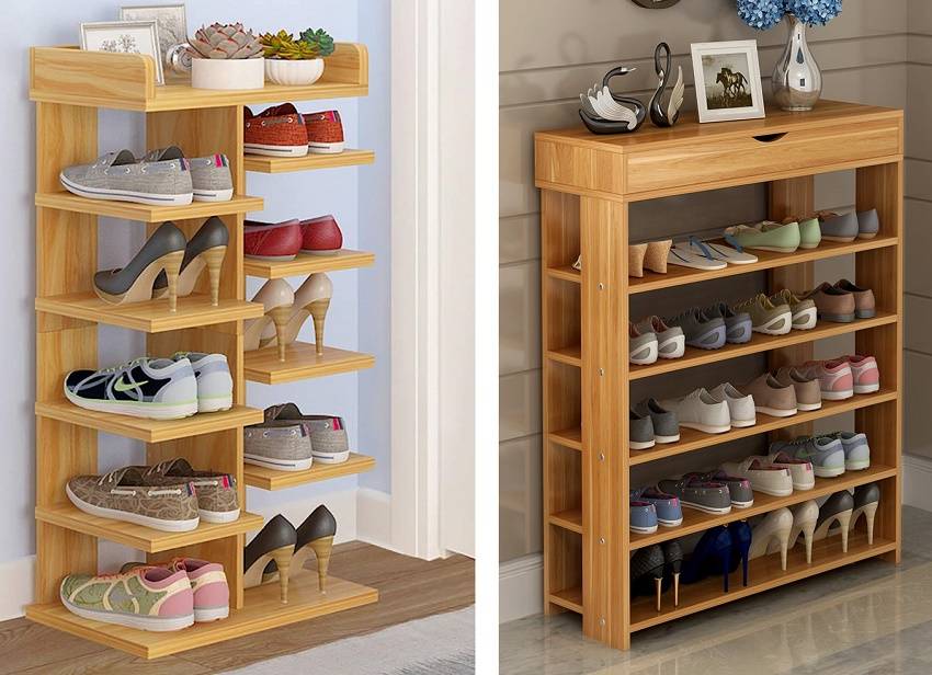 Обувные стеллажи просты в изготовлении, их легко можно смастерить своими руками, если есть необходимые материалы и инструменты. Если опыта в таких делах нет, можно начать с модели попроще. Найти фото с несложными чертежами не составит труда, кроме того, их всегда можно немного видоизменить под собственные нужды.
