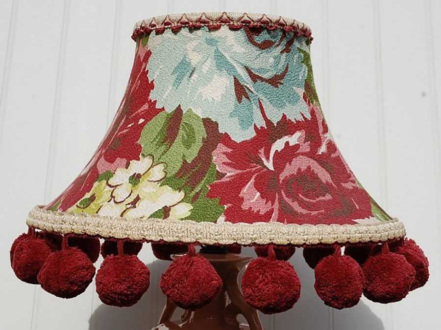 Люстру с тканевыми абажурами легко обновить, заменив материал. Можно использовать не совсем традиционную ткань. Например, кружево добавит интерьеру лёгкости и изящества, а грубая фактура мешковины сочетается с деревенским стилем. Ткань дополняют креативными украшениями: вышивкой, аппликациями, розами из свёрнутых лент, пуговицами и т. п.