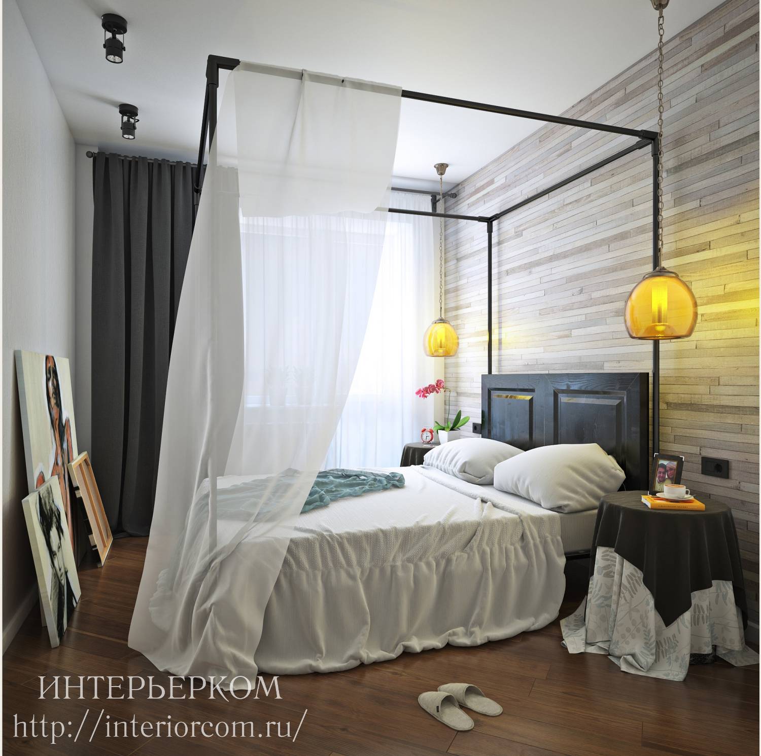 Акцентная стена в интерьере спальни — проект частного дома с верандой