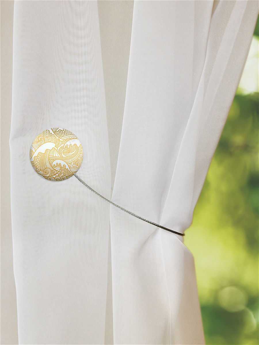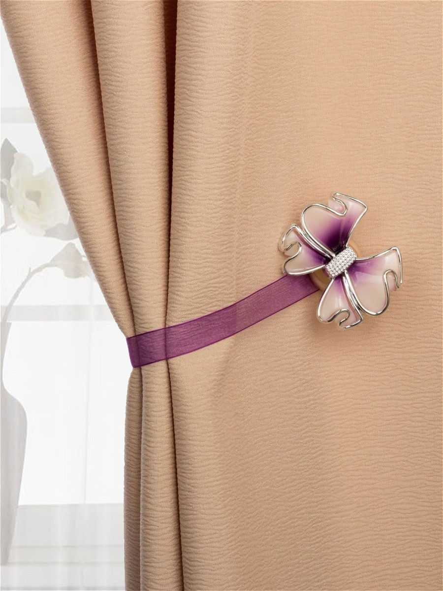 - Легкие портьеры (однотонные или с цветочным узором) требуют подхватов-шнурков, крупных заколок или магнитов с декором из бусин или цветов.