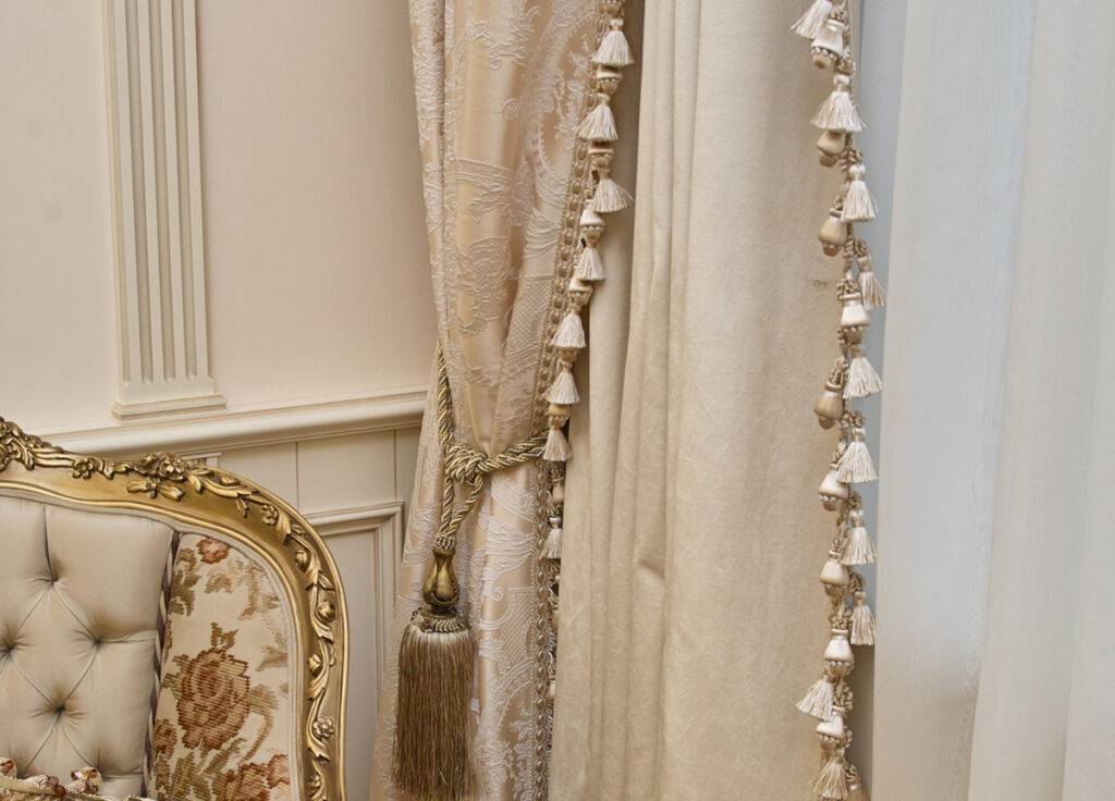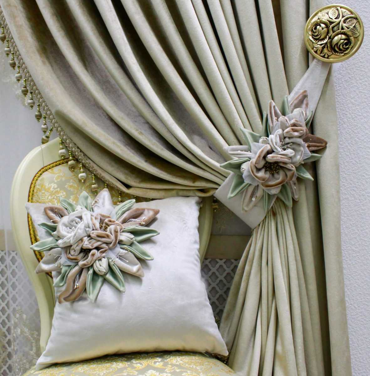 Как можно задекорировать шторы, какие украшения и аксессуары использовать для завершения убранства комнаты?