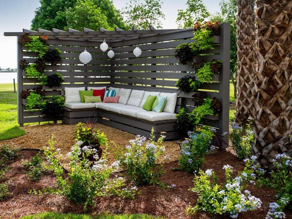 Их можно поставить около декоративного водоема, поместив рядом удобные шезлонги, кресла-качалки, детские качели. При необходимости такие ширмы позволят укрыться от любопытных глаз.