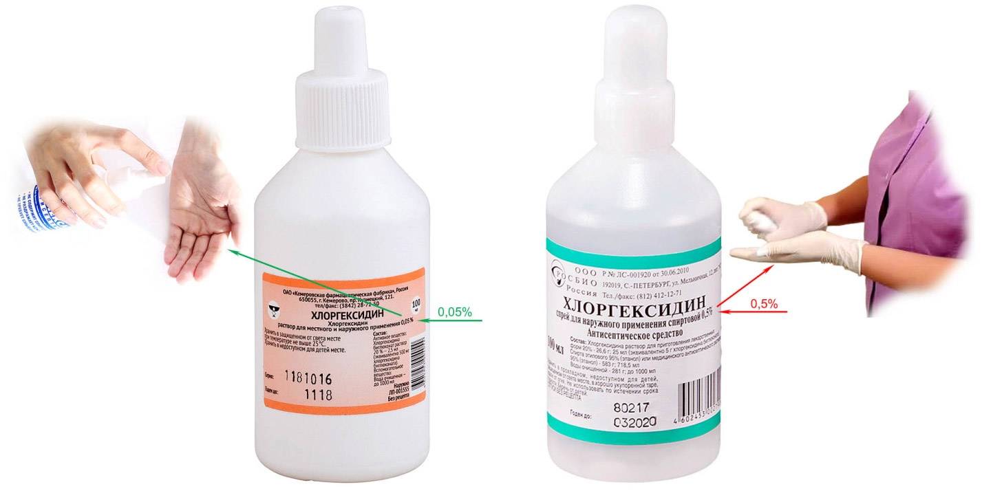 Медицинский хлоргексидин выпускается в 0,05%, 0,5% и 2% водном растворе. Последний – профессиональный препарат, для работы с которым нужны специальные познания и лаборатория не хуже обычной клинической. Но и прочие продажные формации имеют свои особенности применения.