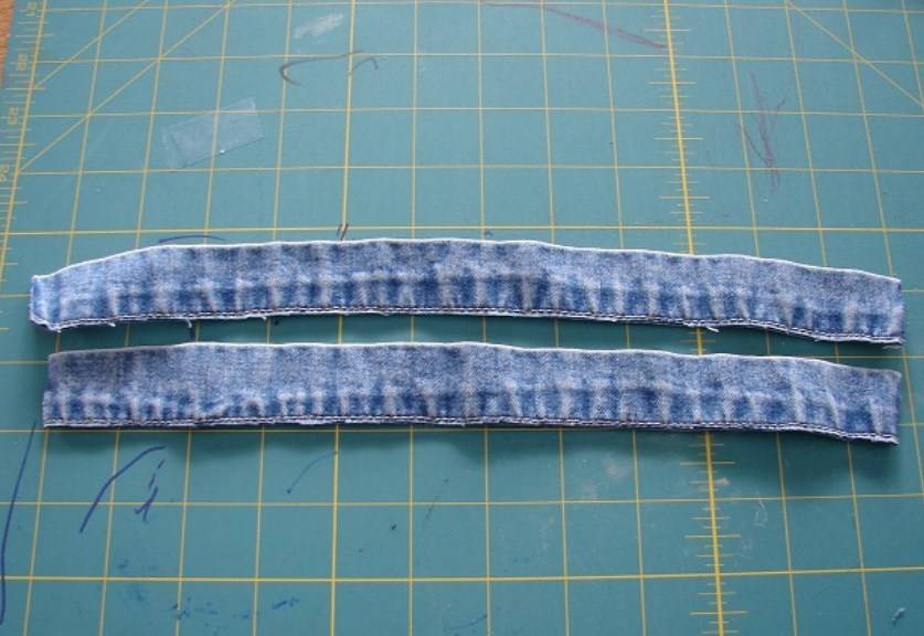 10. Выворачиваем, срезаем кончик заготовки (простроченная короткая сторона), заглаживаем заготовку так, чтобы шов шел по середине.