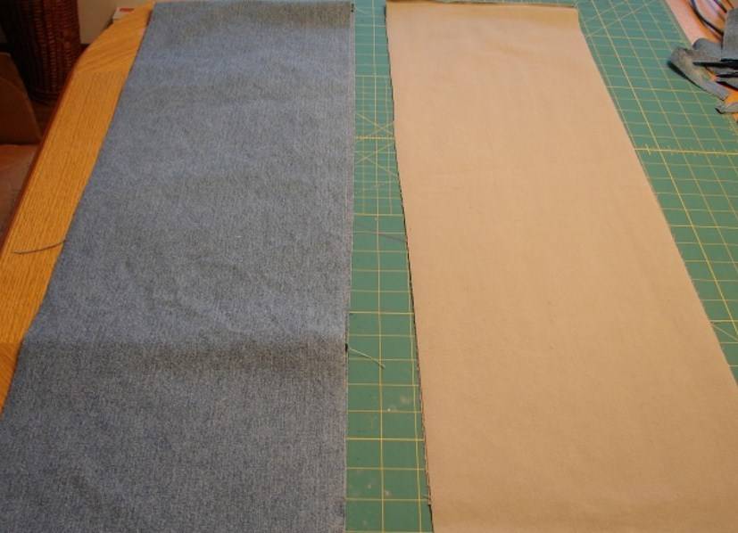 2. Из основной ткани вырезаем прямоугольник 48*120 см, так же простегиваем на слимтексе и вырезаем прямоугольник 45*116 см, сшиваем его в трубу.