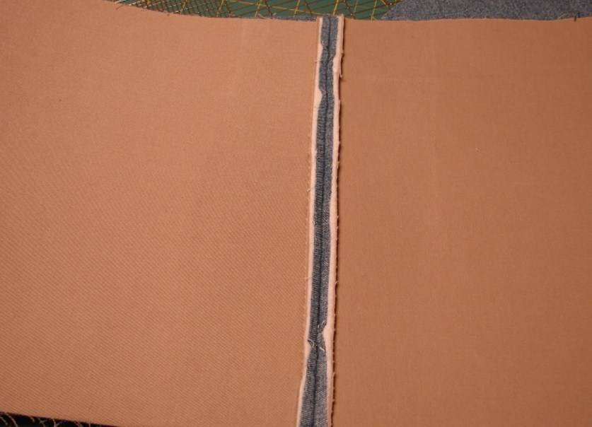 16. Бейка у нас сомкнулась в кольцо, отрезаем лишнее и зашиваем оставшийся участок бейки к коробу.