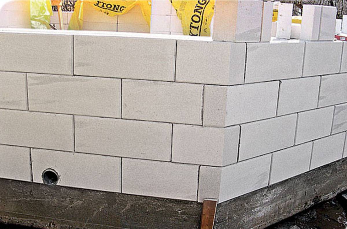 - Кладка «в один блок» выполняется для одно- и двухэтажных зданий. Используются блоки плотностью D500, они отлично удерживают тепло. Начинать следует с углов. После установки угловых блоков нужно провести шнурку и уровнем или нивелиром проверить ровность. После кладки первого ряда надо пару часов подождать, чтобы он застыл, а потом производить работу дальше. Рекомендуется перед кладкой следующего ряда шлифовать поверхность предыдущего, чтобы повысить адгезию.