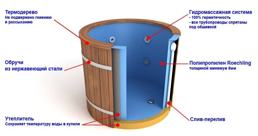 Конструктив у уличной купели нехитрый. Принцип работы на фото ниже.