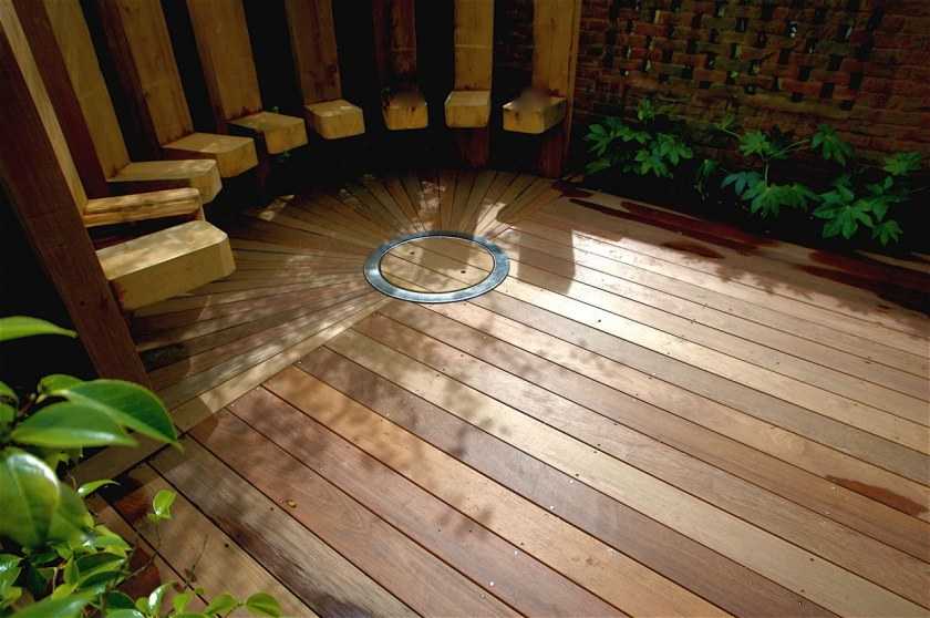 Доски кладут на лагах с пропуском 44 мм. Между досками можно поставить гвоздь для точности. Саморезы могут лопнуть при перегрузках, лучше брать винтовые гвозди, их шляпки покрывают мастикой. Обработку досок выполняют в ходе укладки.