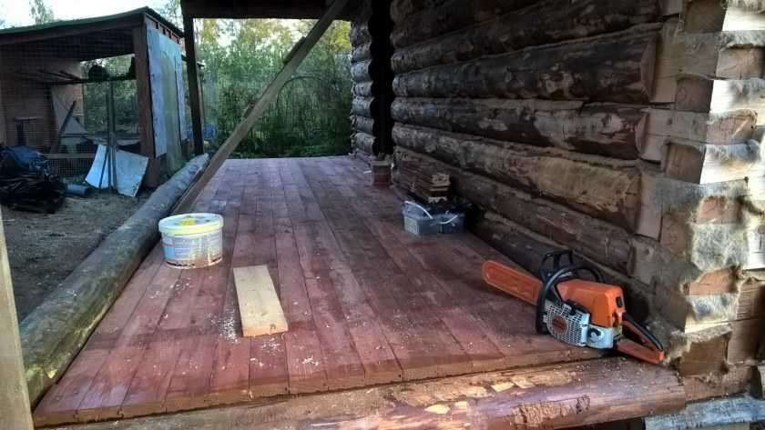 Если веранда составляет 2х6 м, то потребуется 16 досок по 6 м, с учетом лаг и запаса по 1 доске. Если на досках есть синева, плесень, то их можно почистить шлифовкой и отбеливателем. При следах от древоточцев можно заделать дырки мастикой.