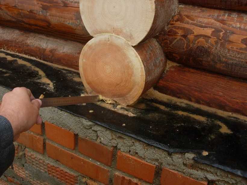 Прежде чем выкладывать обвязку, проложите гидроизоляционный материал между бетоном и деревом, например, рубероид.