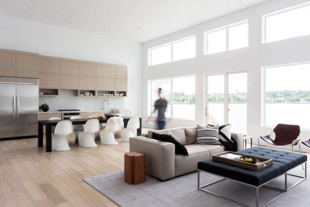 Чтобы придать рациональному интерьеру, выдержанному в стиле контемпорари, домашний уютный облик, нужно учитывать главный критерий этого направления – уютные зоны комфорта для каждого жильца. Они могут находиться в разных частях дома, что зависит от увлечений домочадцев: на кухне, создающей удобство для различных кулинарных экспериментов, в гостиной с приватной и репрезентативной зоной, в домашней библиотеке или спортивном уголке.