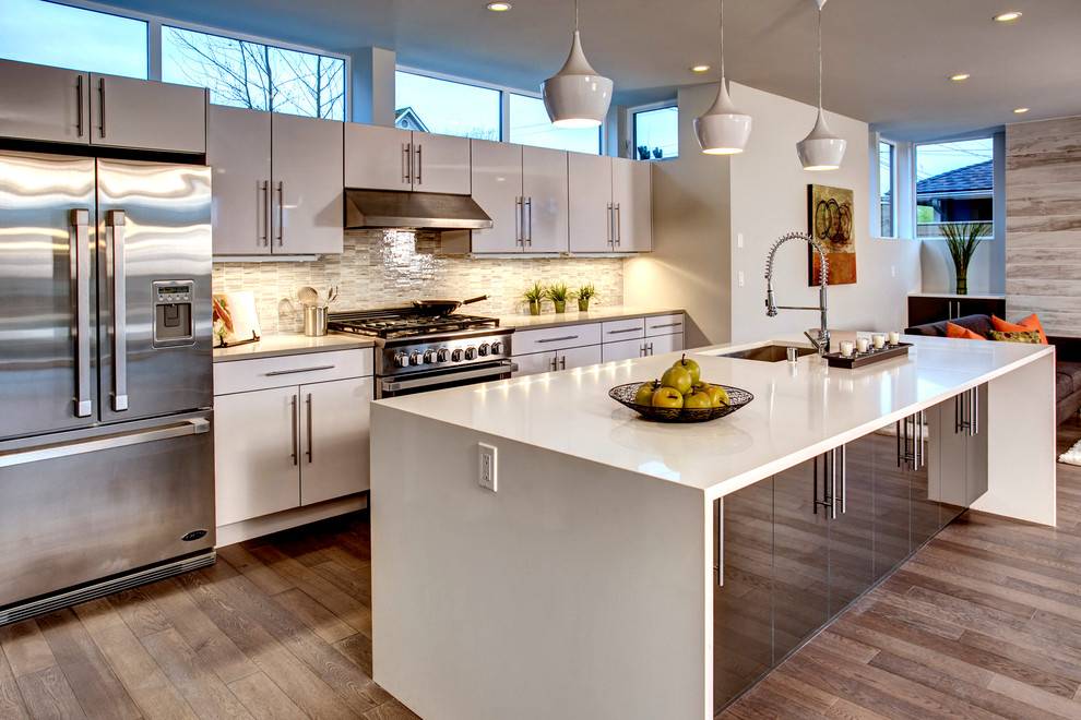 Светло-серые стены – самый безопасный вариант, однако этот цвет довольно капризен. И вместо того, чтобы стать легким фоном для гарнитура он может превратить кухню в мрачное и унылое помещение.
