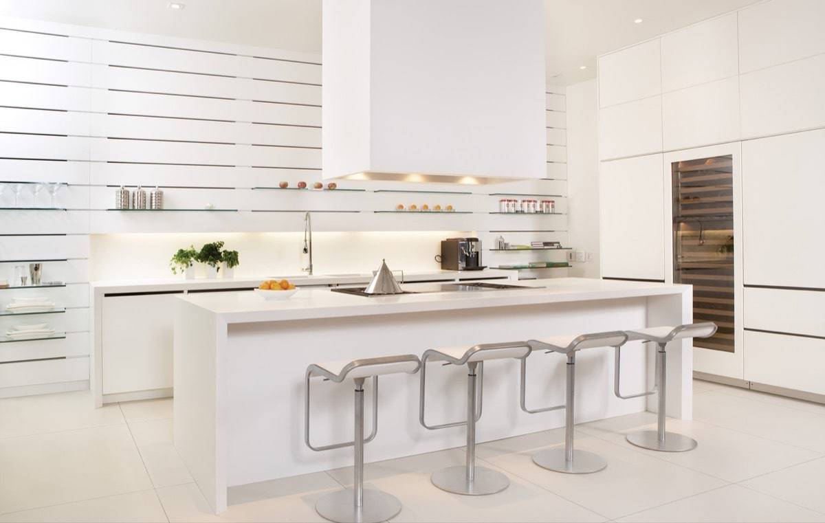 Также отметить стоит и то, что зачастую если создается белая кухня, то все детали делаются идеально гладкими, чтобы в дальнейшем не было каких-либо проблем с различными шероховатостями, в которые обязательно, со временем, попадает грязь.