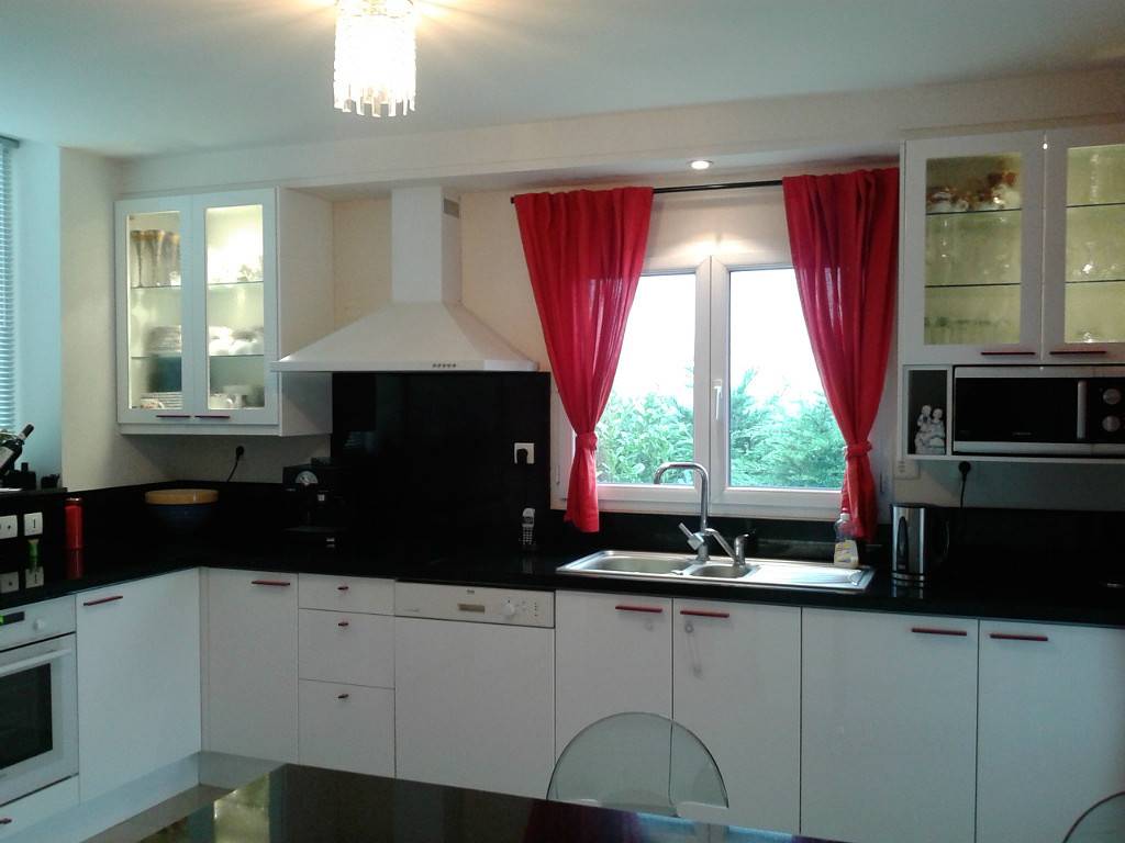 Прекрасно будут смотреться красные занавески, шторы или жалюзи на окнах. Красной также может быть декоративная посуда и кухонная утварь.
