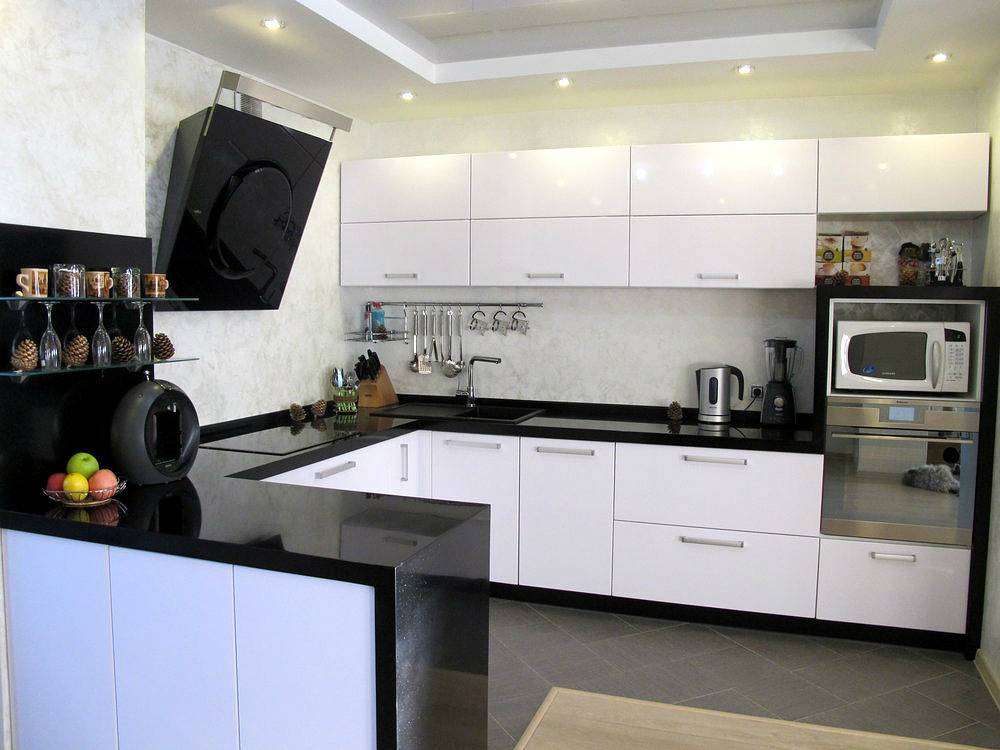 Как только вы решили, что дизайн кухни будет предусматривать лишь классическое сочетание двух цветов, встает следующий вопрос: что выполнить в черном, а что в белом цвете.