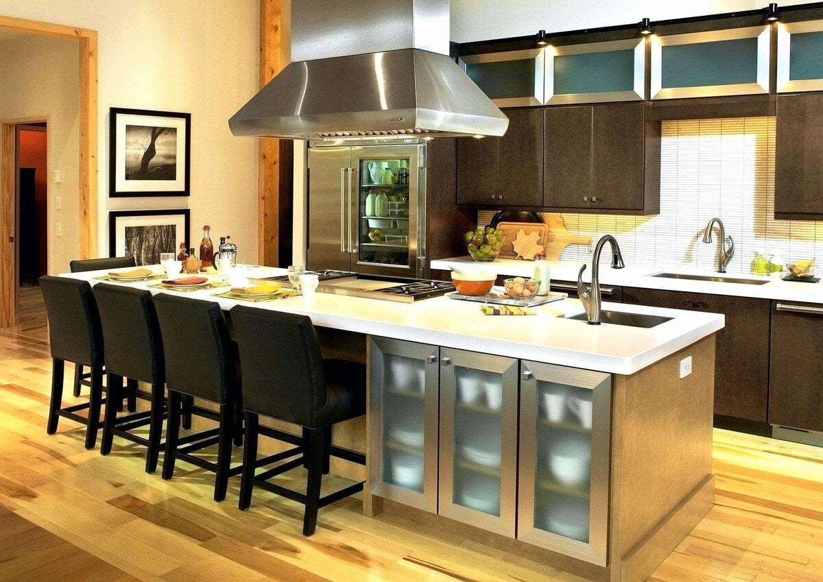 Данный вариант обустройства интерьера больше подходит для просторных или среднего размера помещений. На маленькой кухне он не будет выглядеть так эффектно, и сделает ее еще более тесной.