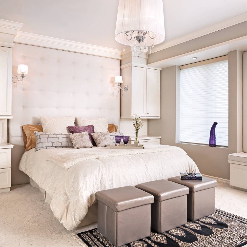 Может быть вы мечтаете о романтической спальне? Белый цвет для нее идеально подходит. Некоторые аксессуары которые понадобятся для романтичной атмосферы: искусственный мех, мелкие розовые или золотые детали, старинное зеркало, тонкие занавески, тусклые огни, драгоценные и изысканные предметы декора, удобные и слегка цветные подушки. Добавьте несколько золотых штрихов к картинам и декоративным предметам, и изысканность завершена.