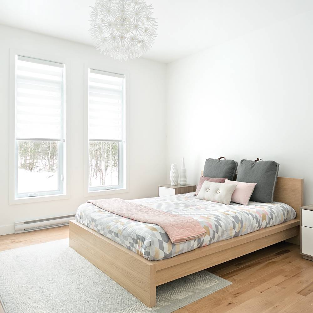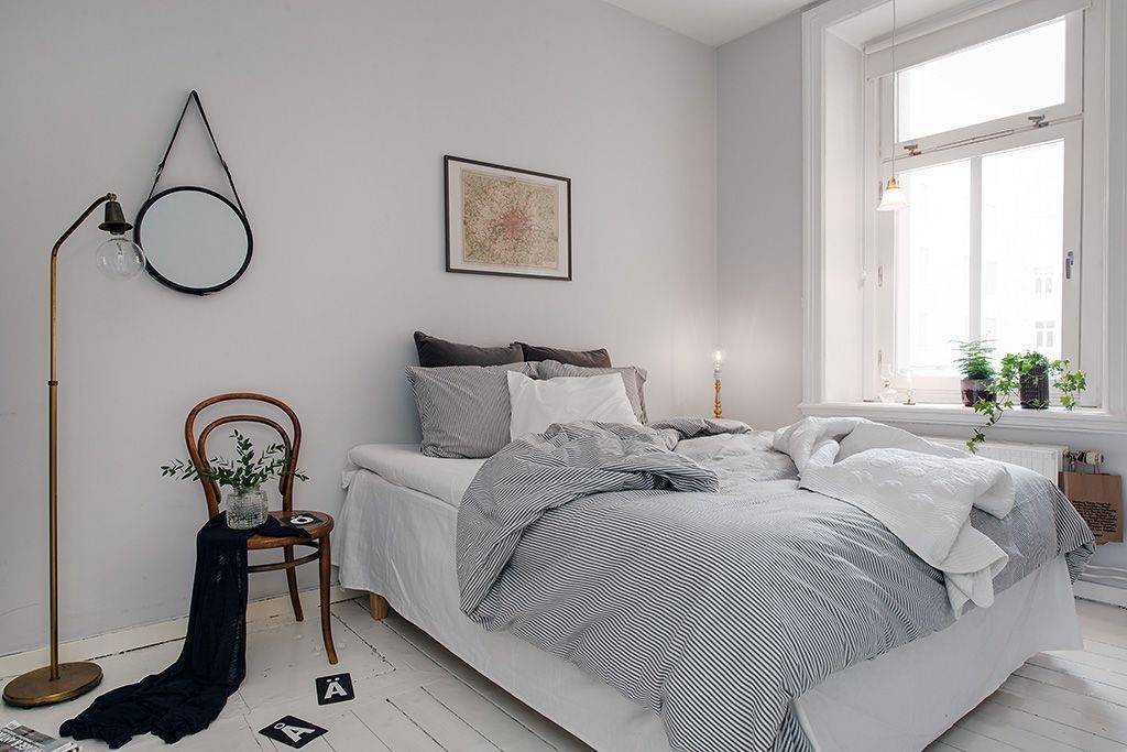 - Скандинавский стиль отдает должное белоснежным стенам, мебели и простыням, чтобы стало светлее и радостней в помещении.