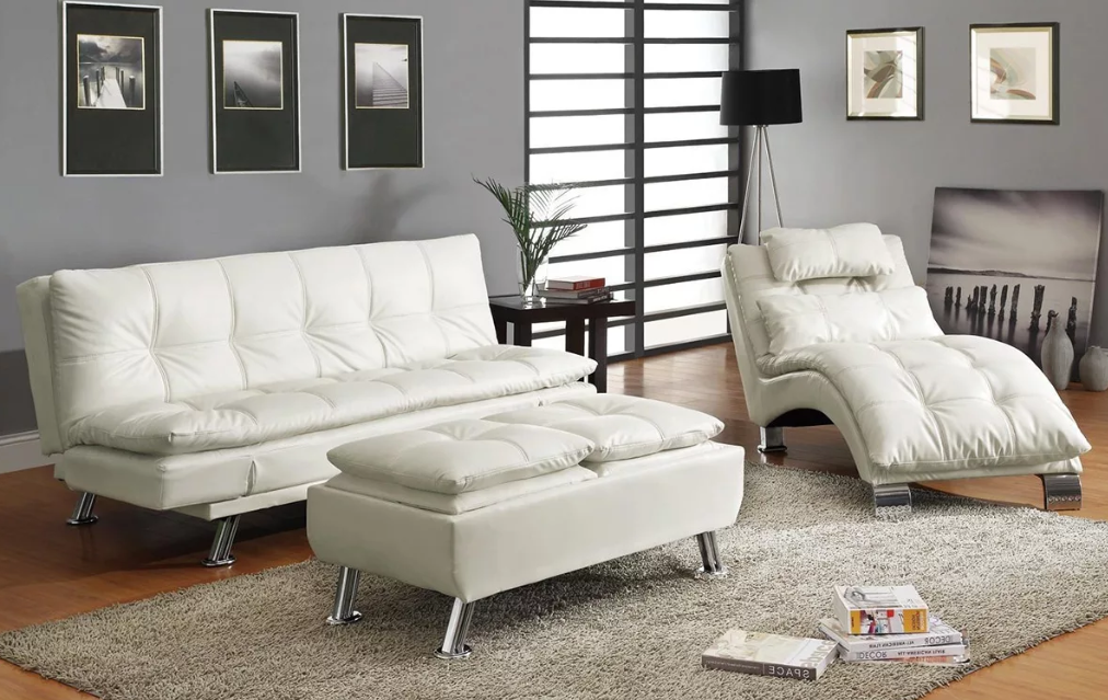 Светлая мягкая мебель рекомендуется для покупки только при возможности простой очистки ее поверхности. Несмотря на то, что оттенки белого делают диваны или кресла более стильными и эффектными на вид, уже в первые месяцы эксплуатации на них появятся пятна. Даже если пользоваться мебелью аккуратно, полностью избежать загрязнений не получится, поэтому для гарнитура с тканевой обивкой стоит сразу покупать чехлы такого же цвета — иногда они идут в комплекте. Без подобных дополнений владельцу белого дивана придется часто заказывать химчистку, хотя и она не в силах полностью предупредить появление на ткани пожелтения.