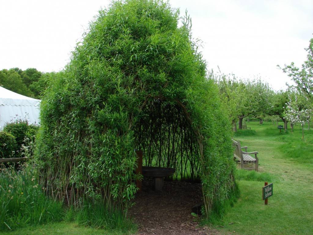 Ещё более интересное решение – посадить ивовые прутья и вырастить из них беседку нужной формы