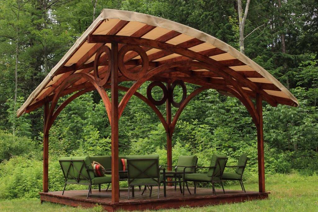 Во всем остальном лучше руководствоваться собственными вкусами или прислушаться к рекомендациям ландшафтного дизайнера. Любой материал может прослужить годами, если был правильно обработан. Любая форма может вписаться в параметры участка. Любое наполнение беседки может радовать глаз.