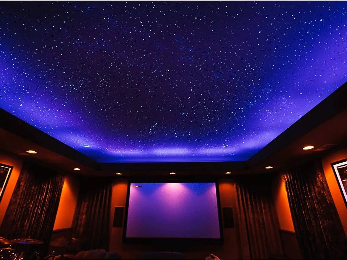 Потолок может служить продолжением общей концепции комнаты или стать неповторимым произведением искусства. На поверхность можно нанести необыкновенный узор, орнамент или даже фотографии.