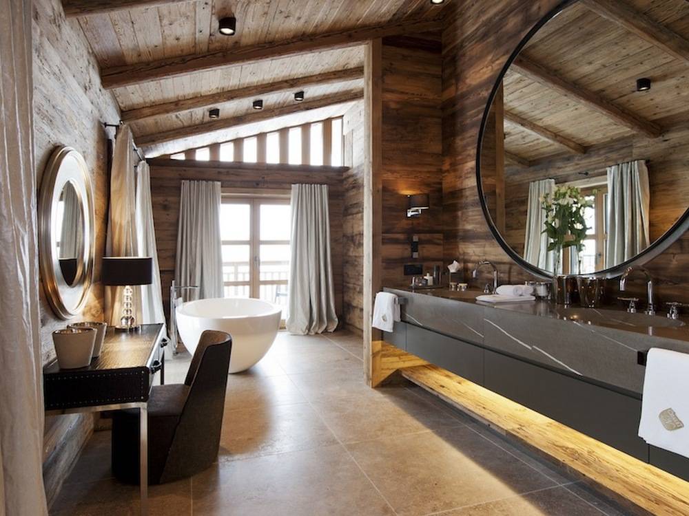 Ванная в стиле шале сочетает грубую древесину и утонченный французский шарм
