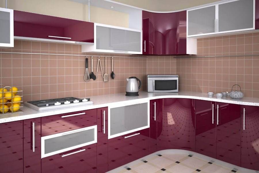 Еще одной особенностью угловой кухни могут стать радиусные фасады. Они представляют собой изогнутую поверхность с плавными линиями. Такие конструкции используются на крайних модулях.