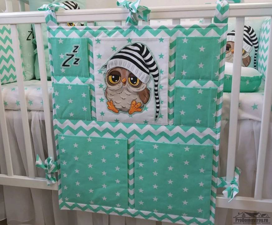 Если хочется сделать бампер с карманами, то неотъемлемым условием будет их присутствие на наружной стороне кровати. Внутреннее размещение всегда станет завлекать малыша.