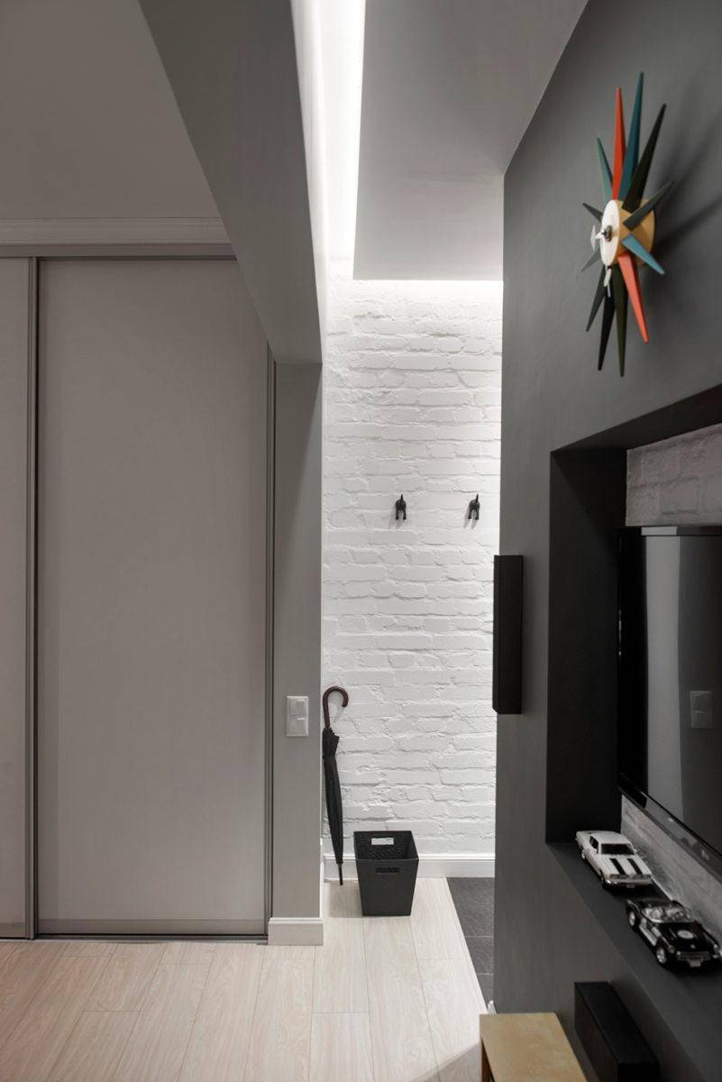 Если выбрать серый интерьер прихожей и добавить немного декоративных деталей ярких цветов, можно добиться менее аскетического интерьера.