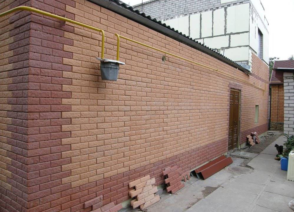 Такой вариант отлично подходит для цоколя. На данный момент выпускаются разновидности с крупными деталями небольшой толщины, что дает возможность отделать дом полностью. Малая востребованность такой продукции объясняется высокой ценой.