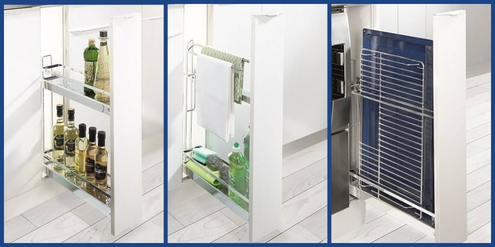 Kessebohmer — 150 мм. Выдвижные элементы для бутылок и банок, полотенец и поддонов