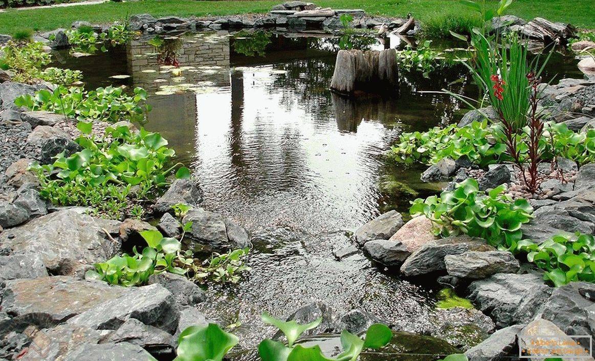 На окрему увагу заслуговують штучні водойми, які є невід’ємною частиною повноцінного саду. Для декору часто використовуються натуральні і штучні матеріали, в основному, камені. Ними можна позначати межі ставка, а також вистилати дно. Камені або плитка потрібні і для того, щоб захистити ставок від осипання грунту. Якщо біля декоративного водоймища в безпосередній близькості знаходиться альпійська гірка, загальна картина тільки виграє.