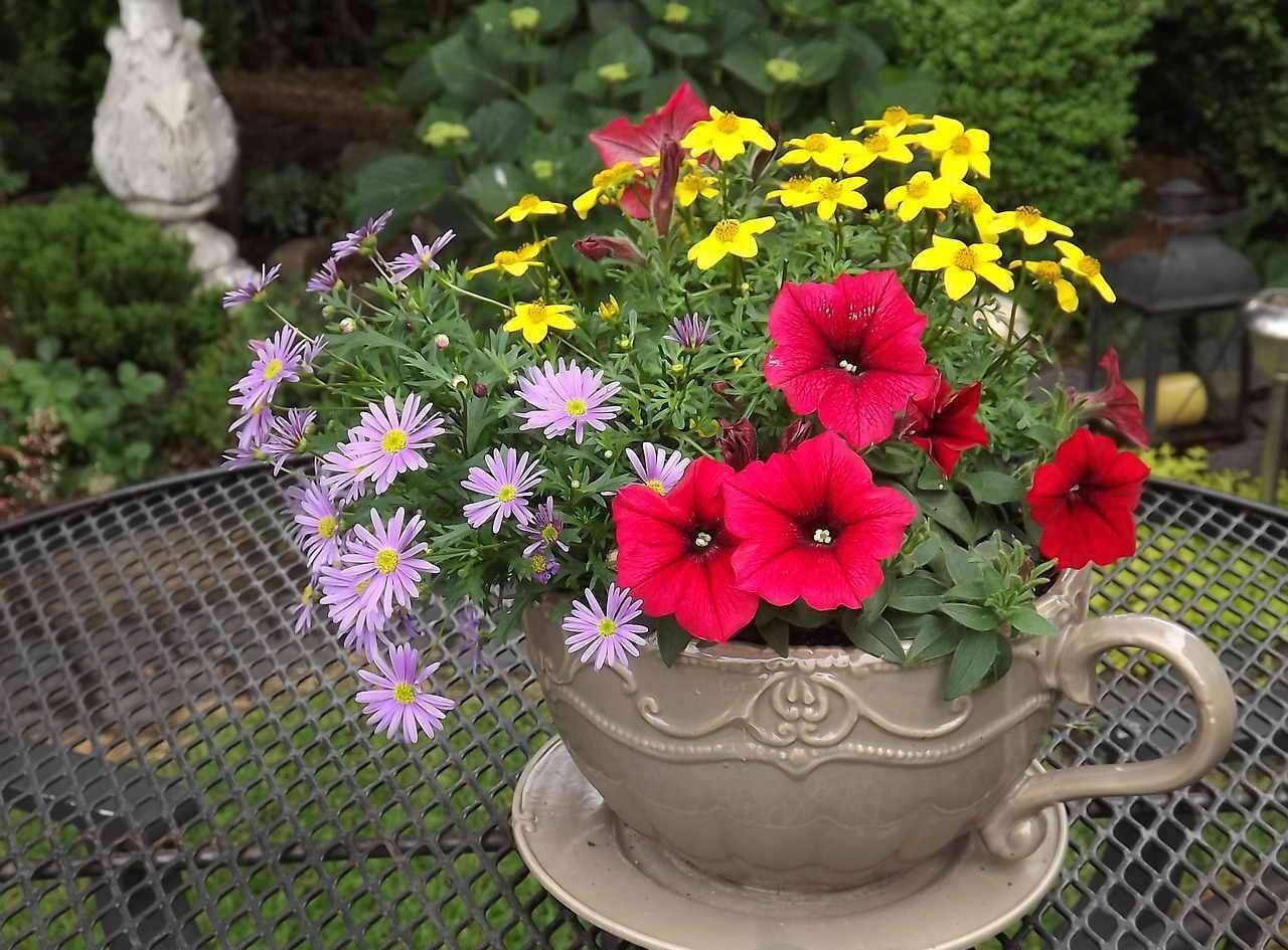 Если в доме есть старые, прохудившиеся резиновые сапоги, не спешите их выбрасывать. Покрасьте их в яркие, необычные цвета, нанесите рисунок, посадите в них цветы и разместите на клумбе, или развесьте вдоль забора. Цветочные горшки также можно «усадить» на старую мебель без сидений. Вообще, в цветочную клумбу легко превратить любую утварь — было бы желание и фантазия.