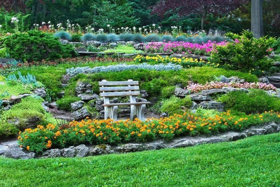 Как вариант – сделать зонирование сада с помощью различных особенностей растений. Например, цветы можно рассадить по оттенкам, в одном углу будут красоваться алые розы вместе с красными георгинами и гладиолусами, зато белые астры, ромашки и тюльпаны займут противоположную сторону. Или наоборот, смешать все оттенки по периметру участка, превратить его в яркую, сочную смесь цветков различных оттенков и колоритов.