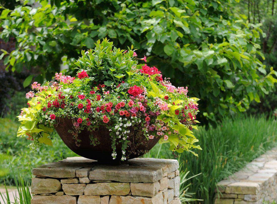 Очень привлекательно смотрятся подвешенные на балконе, в беседке или под аркой корзины с цветами. Подвесные корзины должны быть легкими. В качестве устилающего материала в них тоже используют геотекстиль. Его не слишком привлекательный вид быстро закроется растущими побегами. В качестве почвы используют смесь песка, торфа и перегноя листьев. Гранулы гидрогеля помогут сохранить влагу. Ампельные растения – идеальный вариант для подвесных корзин.