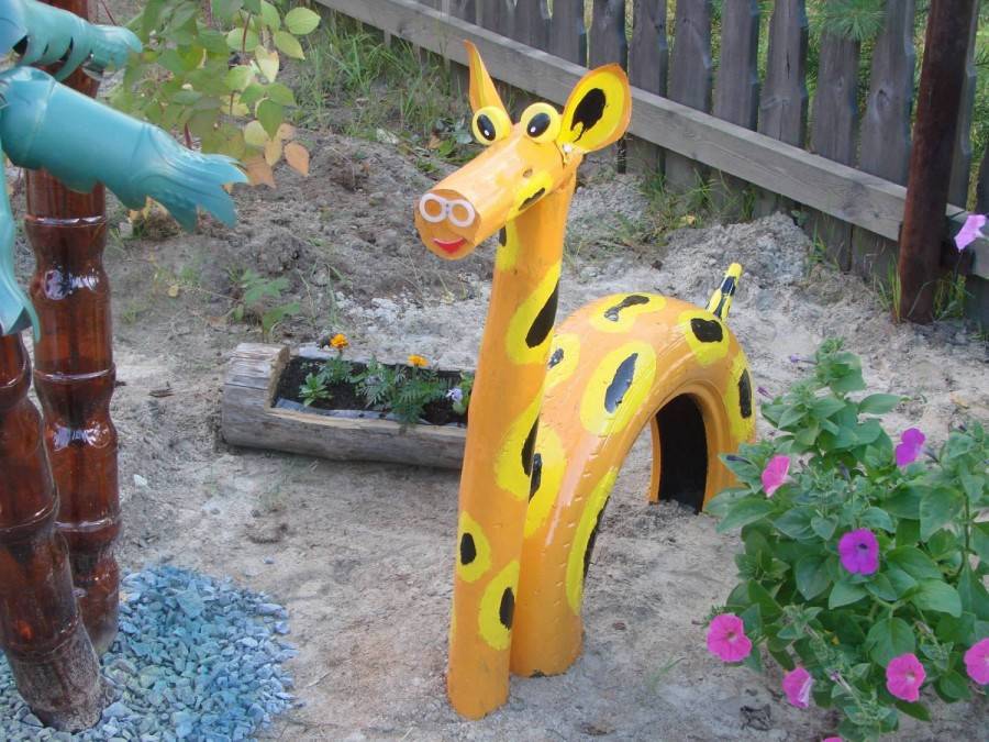 Чего только ни увидишь тут! И, ставшие уже привычными, но несколько модифицированные фигурки-клумбочки поросят, мышей и ежиков из пластиковых бутылок, и композиции из спилов и поленьев (лошадки, запряженные в тележку, колодцы, зайцы), и расписные баки для дождевой воды, и оригинальные вазоны из автомобильных покрышек, и многое другое.