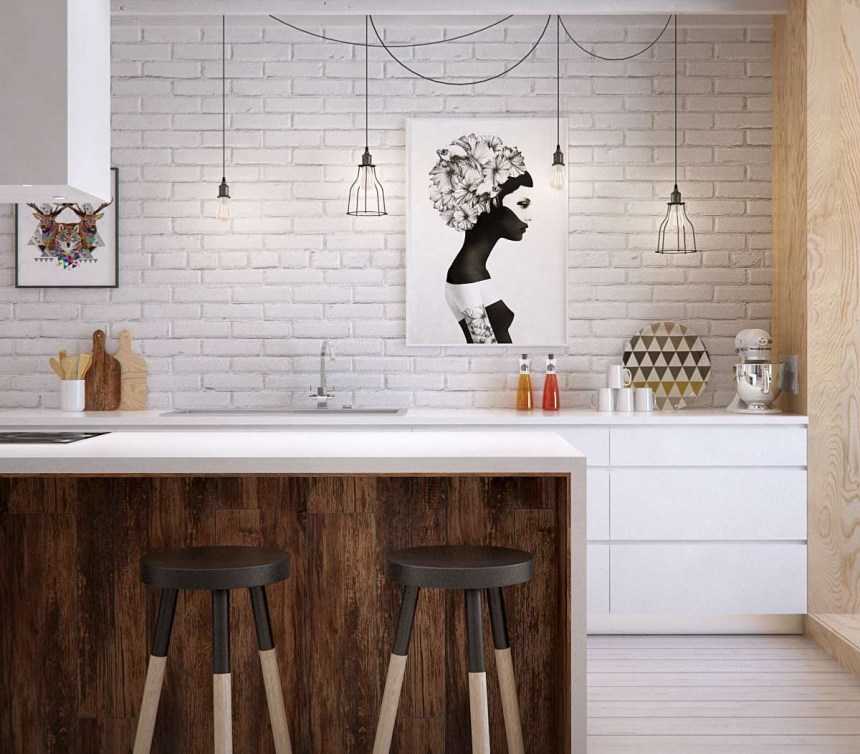 На фото дизайн интерьера кухни-студии, выполненный в скандинавском стиле.