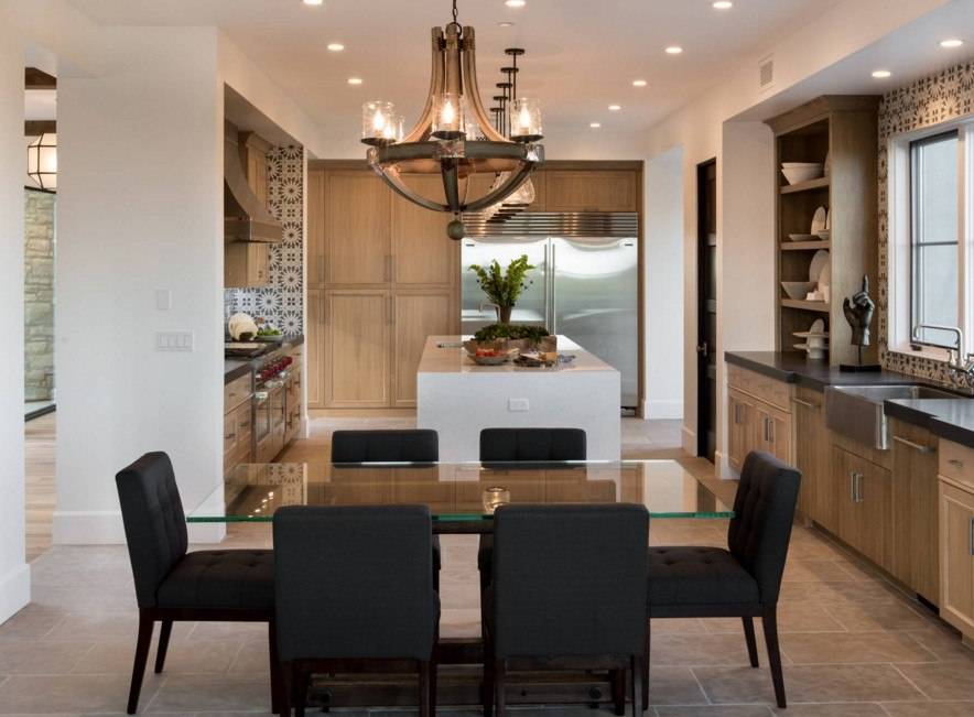 Еще можно убрать дверь, соединяющую кухню с соседним помещением, выполнив дверной проем в виде арки – это зрительно увеличит площадь кухни.