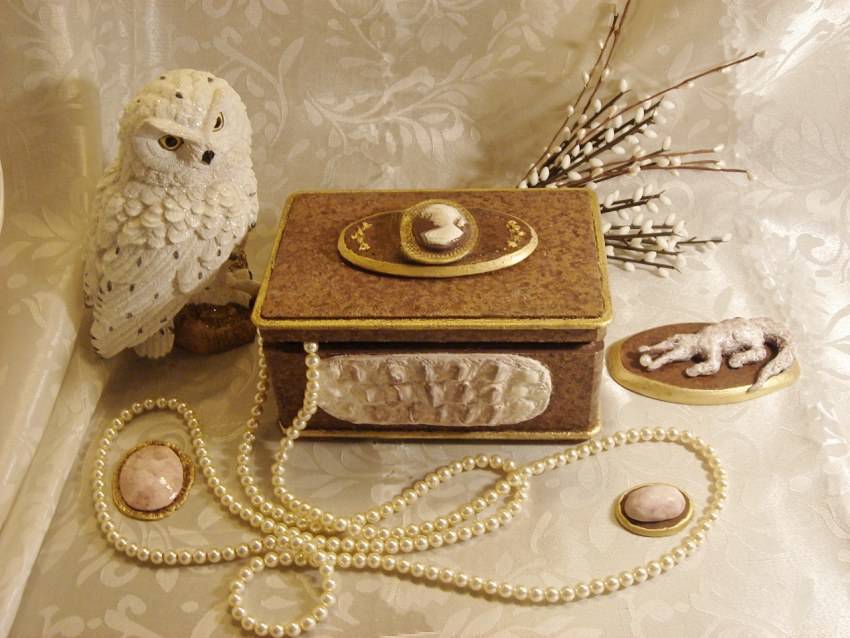 Ключевой особенностью представленных техник декорирования является то, что с их помощью можно сделать шкатулку своими руками. Самодельное и оригинальное изделие станет любимым предметом декора в дамской комнате.