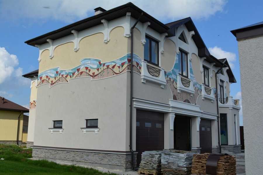 Большое количество мелкой лепнины на несимметричной форме современных коттеджей с гаражами выглядит нелепо.