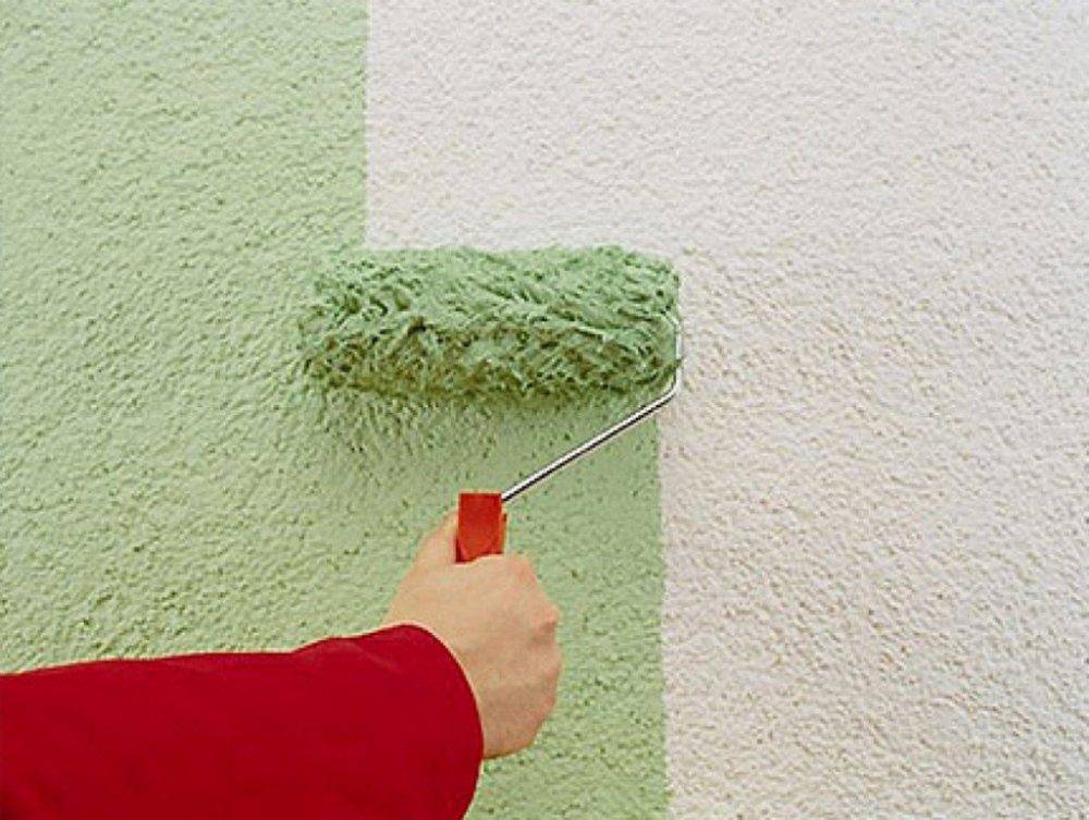 Красить можно меховым валиком с длинным ворсом либо компрессором с краскопультом. Понятно, что при покраске краскопультом качество покраски будет выше за счет более полного прокраса стен.